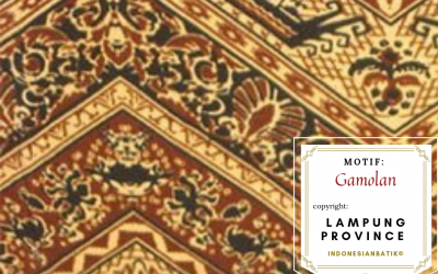 Motif ini menggambarkan Gamolan, alat musik bambu dari Lampung yang