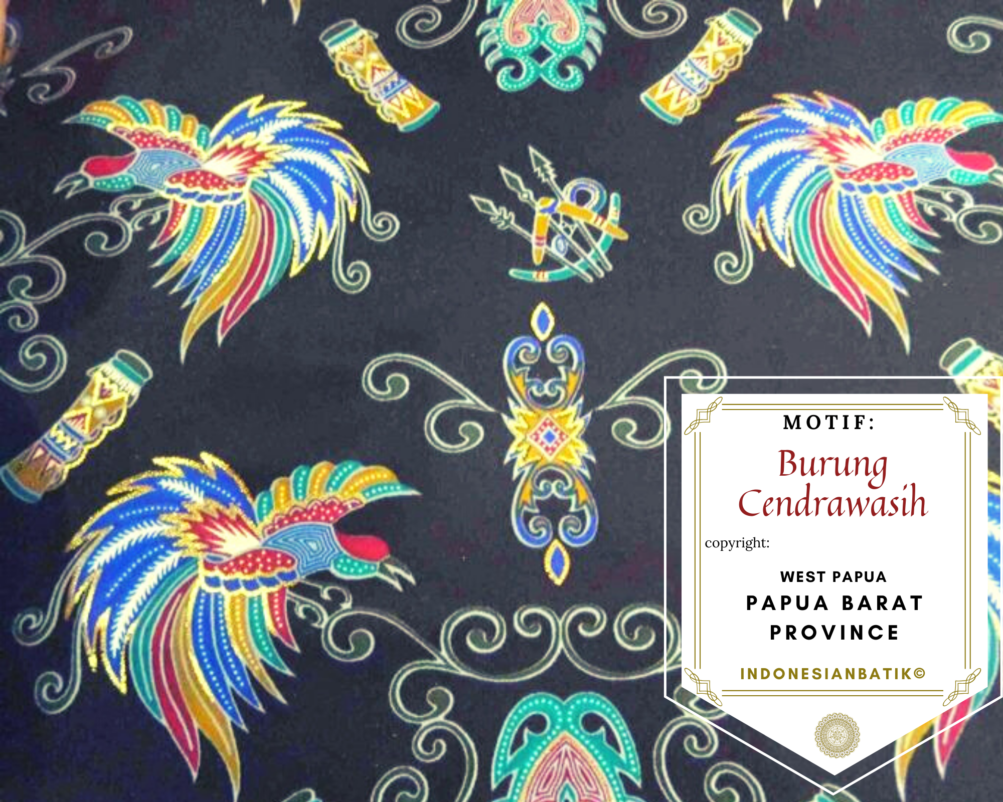 Cendrawasih bird or Bird of Paradise (Paradisaea), is a motif that illustrates the endemic bird from Papua land. Cendrawasih is one of the rare bird species, protected by the Indonesian government. This bird is believed as a Paradise bird that connects the earth with heaven. This motif is also considered a sacred motif and represents the identity of Papuan community both residing in Papua and West Papua land.