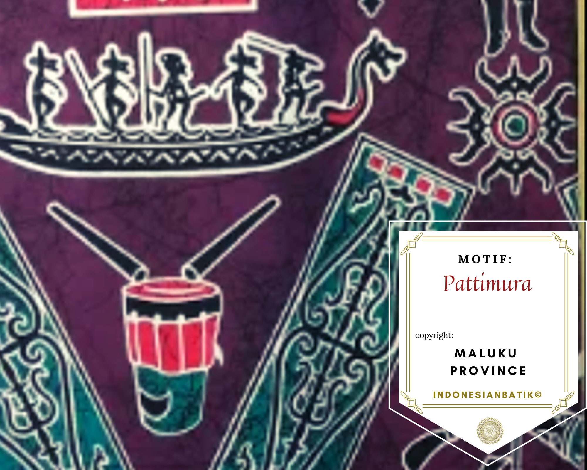 Pattimura is the name of Indonesian hero who fought against colonialism in the 18th Century. The Pattimura motif is illustrated in combination with other typical tribal motifs in the Maluku region. This motif means cooperation in society and reflects the spirit of heroism.