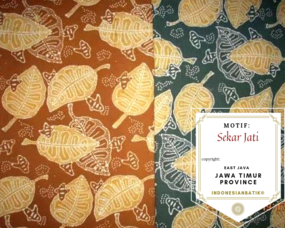 The word “Sekarjati” is comprised of “sekar” (“flower”) and “jati” (“teak tree”). Teak trees are an important economic asset for the Bojonegoro community. This motif symbolizes the hopes that a person has a strong mental character like the teak, and brings positive influences in society like flowers.